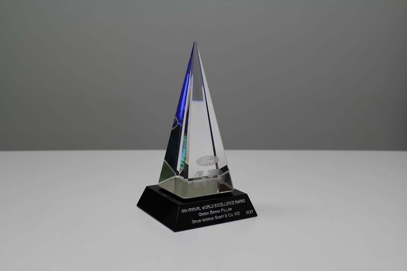 Dearborn, Michigan. GROB-WERKE was honored with the Ford World Excellence Award in one of the Ford brand’s "Primary Brand Pillars" of green, safe, quality and smart. "Ford’s World Excellence Awards allow us to honor our best suppliers across the globe," explained Hau Tai-Tang, Vice President of Global Purchasing at the Ford Group. "They deliver excellence at every level and are key to the success of our company".