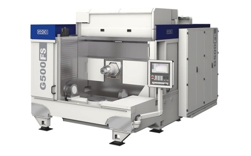 Mindelheim/Hanover. With the machine variants of the F-series, to which the G500F, G520F, G500FS and G600F belong, special emphasis was placed on a large working area and high dynamics. The F-series is specially designed for machining lightweight components such as frame structure and chassis parts as well as battery housings. The machines are characterized by numerous beneficial features and functions. These include their axis arrangement, their high machine dynamics, and their large working area, which is made possible by the horizontal spindle position. Their enormous dynamics are due to the specially developed axle drives. All machines of the F-series are designed for MQL as well as for dry or wet processing and can be set up stand-alone or in combination, automated or interlinked. Their machining accuracy is optimally adapted to the industry-specific work piece requirements. There are basically two different ways of loading work pieces into the F-series: firstly, by top loading with a GROB linear gantry or by front loading with a GROB pallet changer, swivel changer, slide changer, a robot or manually by an employee.
