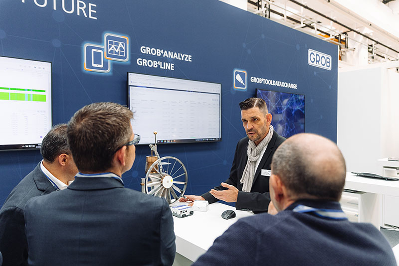It has been a long road to this day starting with the market launch of GROB-NET4Industry with the first applications GROB4Coach and GROB4Simulate at the EMO 2015 in Milan. It has been possible for some time to connect and digitize not only GROB machines, but practically all machines and devices, including their controls, in a holistic digitalization concept. Today, GROB-NET4Industry already meets the requirements for the so-called brownfield approach. It allows a migration to other systems automatically and without further data or additional activities and without any functional changes. This is practically a 1:1 transformation of business processes.