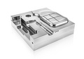 Wählen Sie zwischen Schwenk-/Rundtischen mit parallel angeordneten T-Nuten (Standard) sowie Schwenk-/Rundtischen mit Palettenspannsystem (Option). Neben der Standardvariante mit A- und B-Achse werden auch die Optionen „A-Achse“ (ohne B-Achse) sowie „B-Achse“ (ohne A-Achse) für die G550 angeboten.