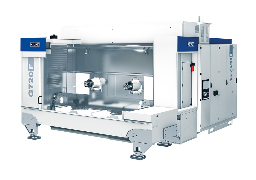 Die Achskombination entspricht dem bewährten GROB-Maschinenkonzept der G-Baureihe mit horizontaler Spindellage und garantiert freien Spänefall sowie besten Wärmeabtransport.